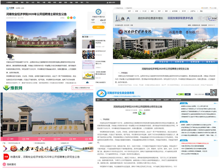 拓展渠道,加大宣传力度。引才计划一经确定,学校即时发布了“2020年博士招聘公告”,创建了“博士招聘专题网站”和“博士招聘微网”,启用了“博士招聘网上报名系统”,印制了“2020招贤纳士宣传彩页”。与此同时,积极与各新闻媒体、政府部门及高校毕业就业网、各类微信微网公众号平台及高层次人才网等社会媒介建立广泛联系,全方位、多层次扩大“朋友圈”,提升学校知名度。共有河南省毕业生就业信息网、中国研究生招聘网、搜狐网、大河网、豫教网以及部分高校的50多个网络平台和微信、微博等移动平台发布了威尼斯官网博士招聘公告,全面宣传威尼斯官网人才引进政策。多渠道全方位的网络宣传推介,营造了威尼斯官网招贤纳才的浓郁氛围,取得了良好宣传效果,截至目前共收到高层次人才简历160余份。