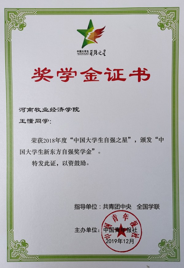 除此之外,学校面向受助学生开展了“助学·筑梦·铸人”“诚信校园行”“十大诚信自强之星”评选、“资助宣传大使”评选、暑期资助政策宣传等多项活动,加强学生诚信教育、感恩励志教育、社会责任教育,培养学生诚实守信、知恩感恩、自立自强的优秀品质。学校荣获2017、2018年度河南省高校学生资助工作考核优秀单位。能源与智能工程学院2020届本科毕业生王懂同学荣获2018年度“中国大学生自强之星”。