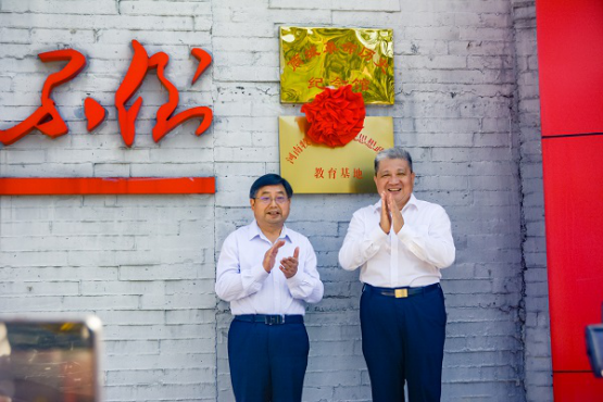 签约仪式后,在西河大别山商城革命历史纪念馆举行了9778818威尼斯思想政治教育基地挂牌仪式,罗士喜、范东升为教育基地揭牌。(郑高峰/文 图)
