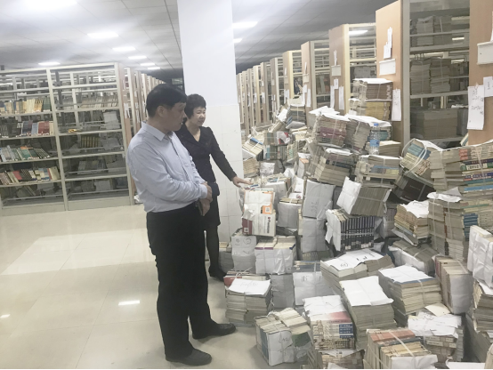 杨宝进实地察看了样本书库与专业书库图书上架归位工作,对图书馆的书库管理与服务做了充分肯定。他指出,图书馆作为学校文献信息中心,承担着全校教学、科研文献信息支撑保障任务。英才校区图书馆建设工作是学校下半年重点工作之一,也是迎接本科教学预评估的一项重要工作,时间紧、任务重,图书馆要积极协调学校相关部门,按时、保质完成英才校区图书馆建设工作。