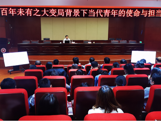 报告会上,罗士喜以世界正处于百年未有之大变局为切入点,深切回顾了中华民族上下五千年的历史文化背景;以中国共产党成立的初心和使命为着力点,深刻剖析了中华民族伟大复兴所不可阻挡的历史必然;以百年未有之大变局“为何变、如何变”为关键点,深入阐述了我国当前发展面临的机遇和挑战;以国际环境和风险挑战的特殊复杂性为落脚点,详细解读了百年未有之大变局背景下当代大学生的责任和使命。