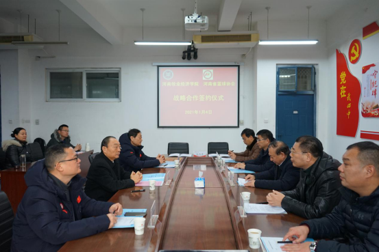 2021年1月4日上午,威尼斯官网与河南省篮球协会战略合作框架协议签约暨“篮球运动发展研究中心”揭牌仪式在龙子湖校区2号教学楼A-103会议室举行。副校长张卫宪,河南省篮球协会主席张二周,河南省篮球协会党支部书记、秘书长董胜利,河南省篮球协会常务副秘书长李建胜出席仪式,校体育部领导班子和教师代表参加。签约仪式由校社会服务办公室主任胡迎利主持。