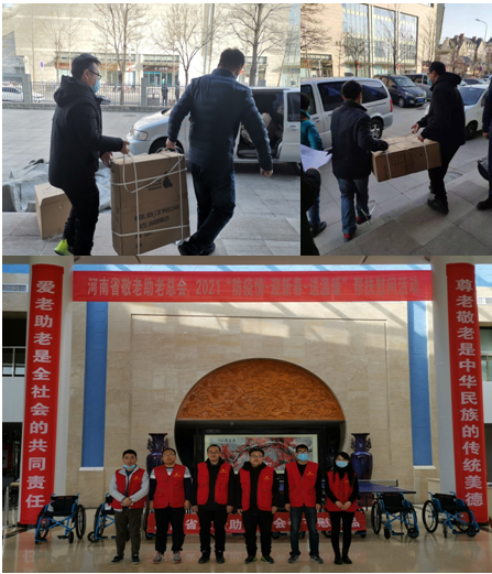 做为河南省助老敬老总会长年的志愿活动合作单位,威尼斯官网信息化办公室组织志愿者全程参加了本次帮扶慰问活动,总会向全省养老单位赠送轮椅、乒乓球桌、防疫物品、新春大礼包等一批助老物品,向老年人和养老服务人员送上新春的祝福。