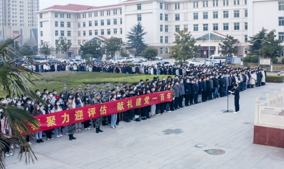 国际教育学院学生崔开济代表全体同学宣读了《校学生会迎接本科教学工作合格评估倡议书》,号召全校学子,与母校同舟共济,积极主动,从自身做起,以饱满的热情、主人翁的态度,积极配合学校做好迎评工作,为学校的发展贡献力量!用实际行动和优异成绩庆祝建党100周年。