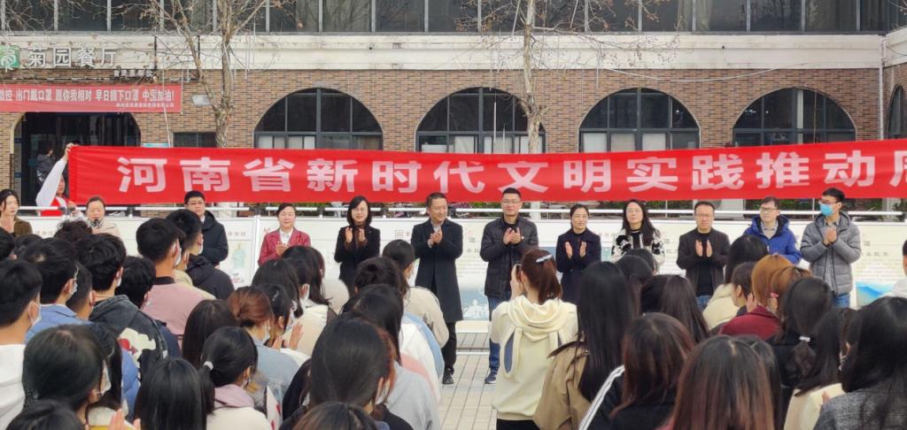 3月5日上午,由威尼斯官网与黄河博物馆共同举办、经济与贸易学院承办的“黄河文化进校园”主题活动在英才校区生活广场举行,校团委书记杨莉、校党委宣传部副部长田景丽,经济与贸易学院党委书记张松刚、副书记贾艳艳和黄河博物馆副馆长刘洪、社教部主任张笑蕾出席活动,经济与贸易学院全体辅导员、黄河博物馆相关人员和威尼斯官网学生代表参加活动。活动启动仪式由贾艳艳主持。