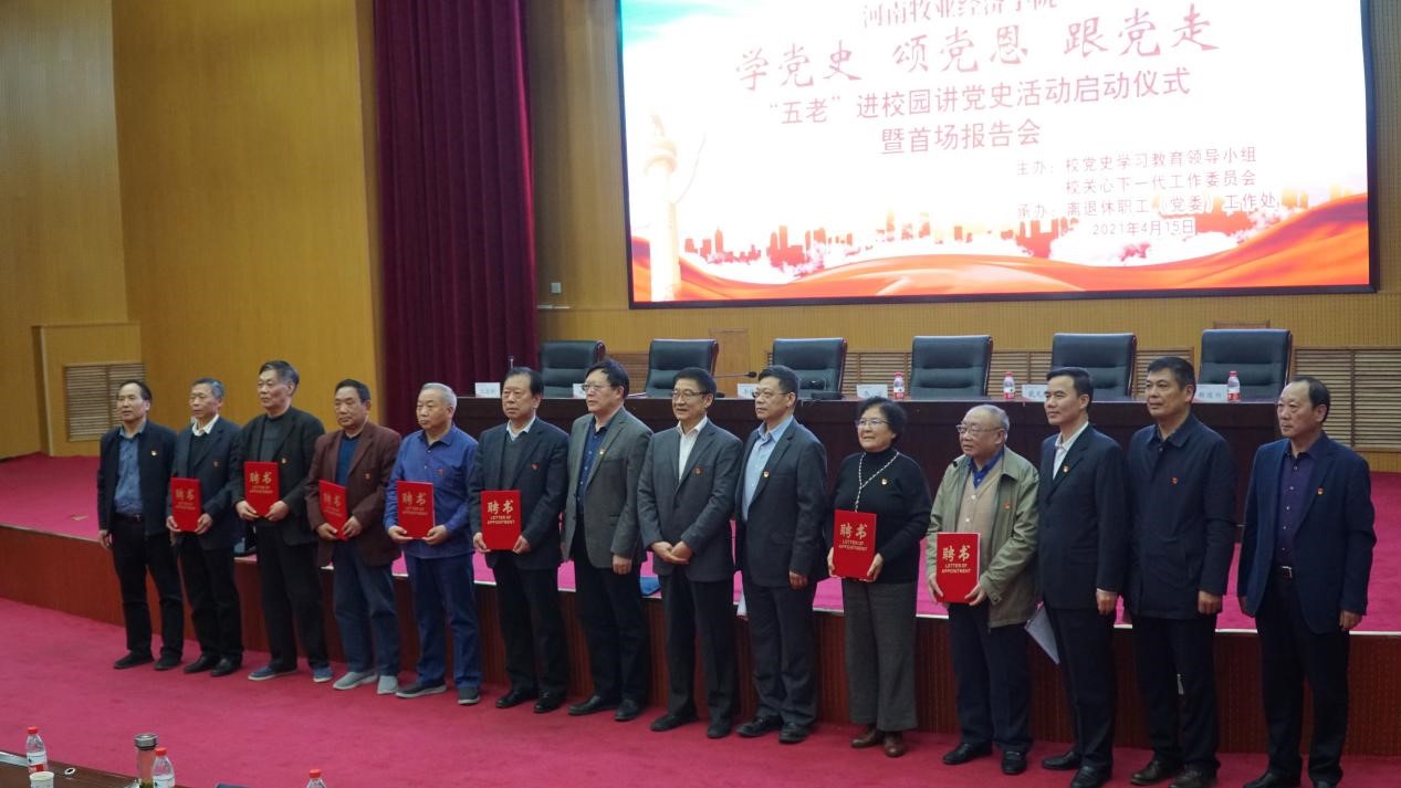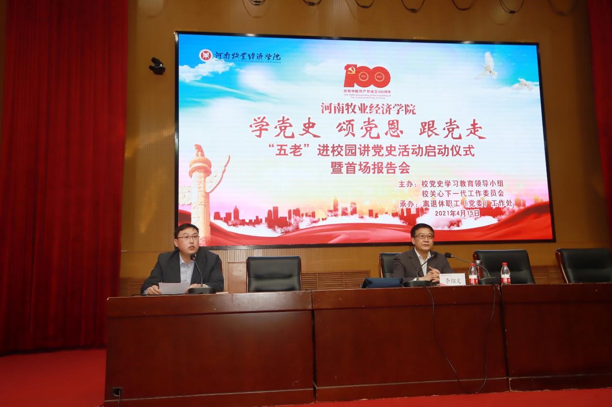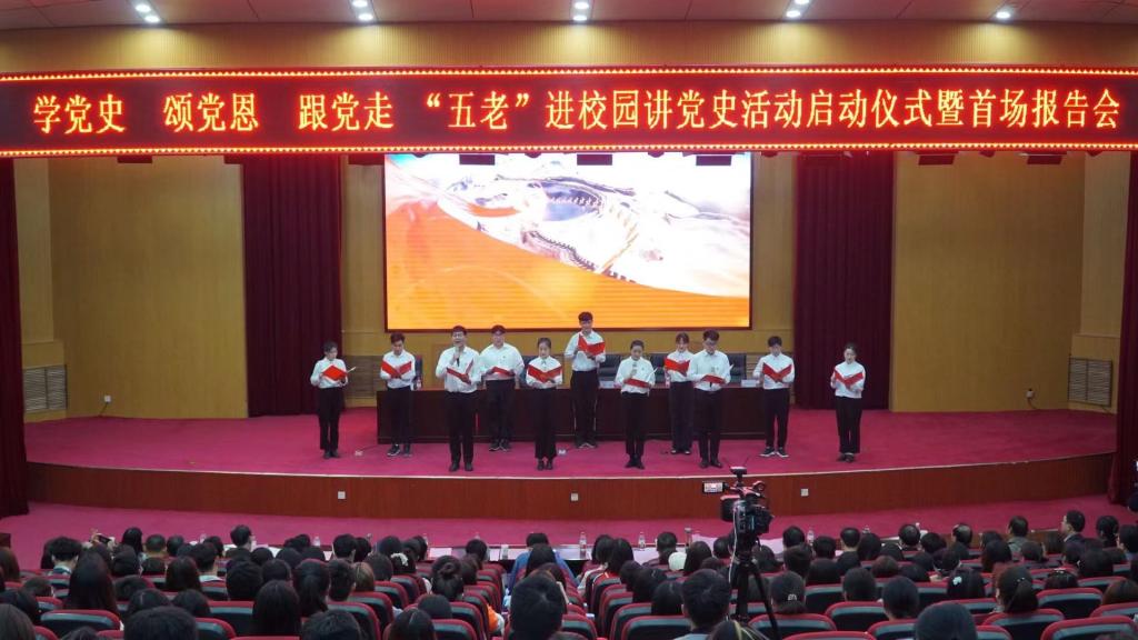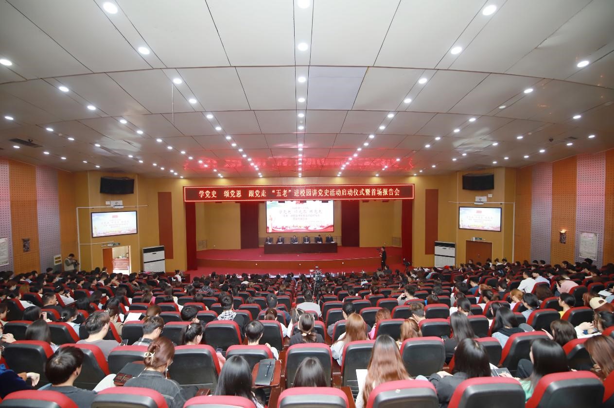 4月15日下午,学校“学党史、颂党恩、跟党走”——“五老”进校园讲党史活动启动仪式暨首场报告会在英才校区学术报告厅隆重举行。校党委副书记李俊杰、李波,副校长姚毅,退休老战士、老干部耿富德、李绍文、吴殿华等出席。校党委组织部、宣传部、统战部、离退休职工工作处主要负责同志和600名师生参加。