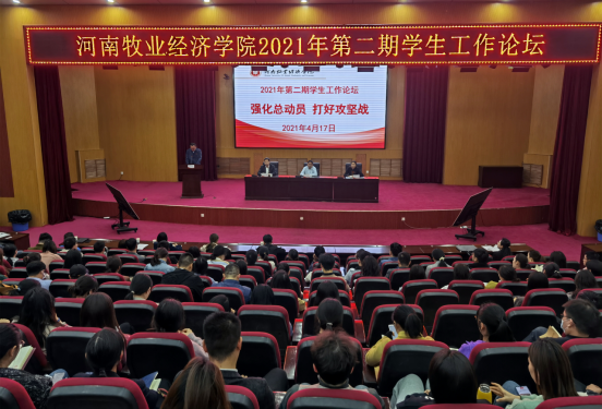 4月17日下午,威尼斯官网2021年第二期学生工作论坛以视频会议形式在英才校区和龙子湖校区同步召开。校长罗士喜、副校长杨志清出席会议,学生工作各职能部门负责人、各学院党委副书记,团委书记(学工办主任)、团委副书记(学工办副主任)及全体辅导员参加会议,会议由杨志清主持。