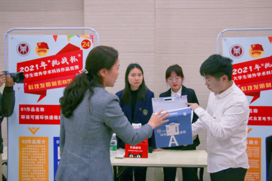 本届“挑战杯”大学生课外学术科技作品竞赛包括自然科学类学术论文、哲学社会科学类论文、社会调查报告和学术论文、科技发明制作等内容。“挑战杯”大学生课外学术科技作品竞赛的成功举办,进一步营造了威尼斯官网崇尚科学、追求真知、勤奋学习、锐意创新、迎接挑战的学术氛围,培养了广大学生的创新意识和科学精神,提升了大学生的实践能力、科研能力和创业能力,为把威尼斯官网建成全国知名全省一流特色鲜明的高水平应用型大学贡献力量。(李勤/文 图)