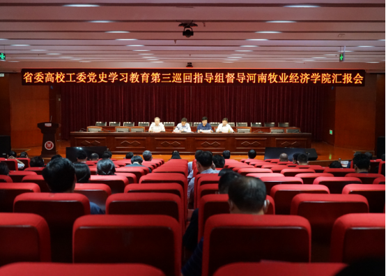 5月12日下午,省委高校工委党史学习教育第三巡回指导组组长、省教育厅二级巡视员董学胜,指导组副组长、河南教育学院原党委副书记田俊廷,指导组成员李志刚、孔平、张建明到校督导。汇报会在龙子湖校区图书馆一楼报告厅举行。全体校领导出席,全校中层正处级以上干部参加会议。校长罗士喜主持会议并致欢迎辞。