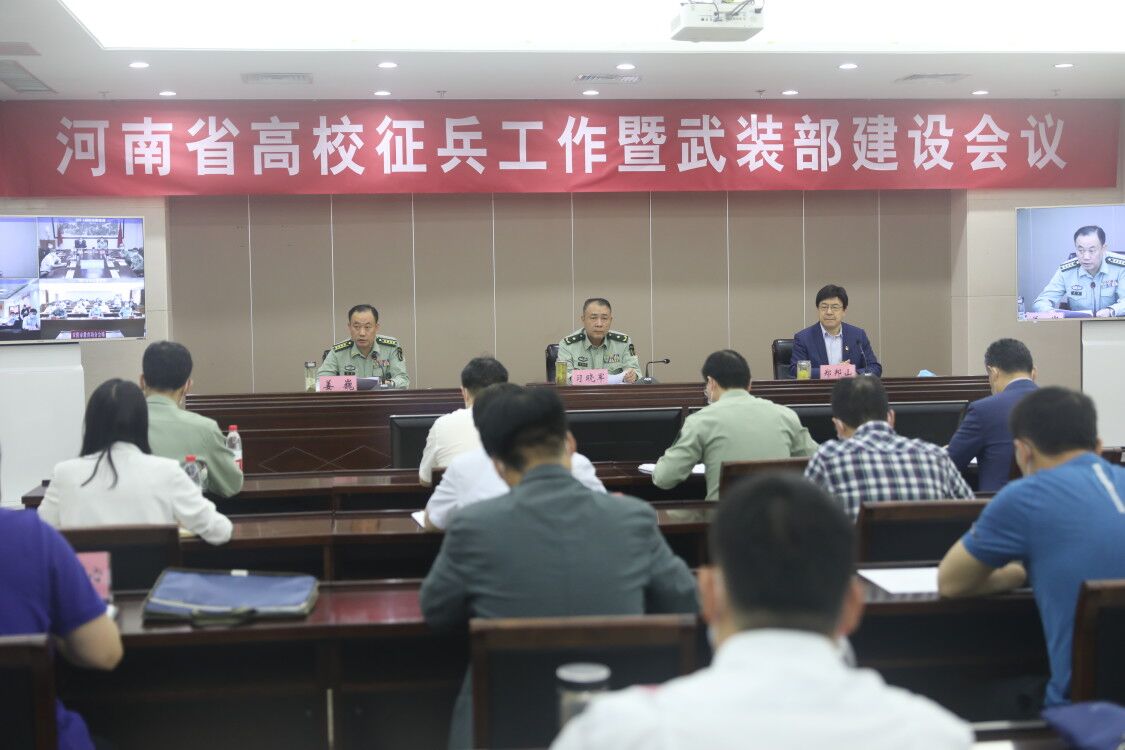 5月19日下午,全省高校征兵工作暨武装部建设视频会议在省直机关综合办公楼D-801会议室召开,省军区习晓军、省教育厅厅长郑邦山、省军区姜巍出席会议,全省各地市人民政府征兵办公室负责人及全省高校武装部部长、征兵工作负责人共计1500余人在各分会场参加会议。校长罗士喜代表学校在大会上作典型发言。