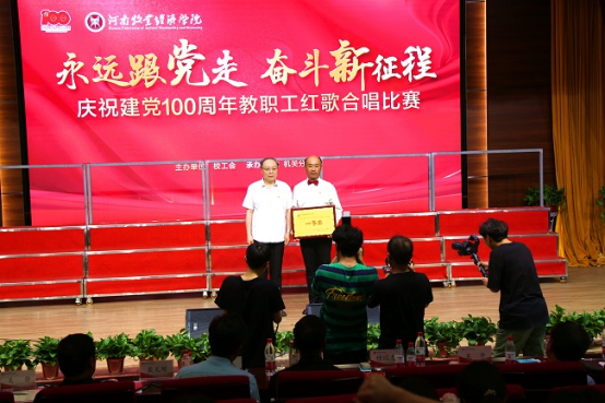 漫漫征途忆峥嵘岁月,声声嘹亮颂百年初心。6月24日,由校工会主办,机关分工会承办的“永远跟党走 奋斗新征程”庆祝中国共产党成立100周年教职工红歌合唱比赛分别在龙子湖校区一号教学楼A100、英才校区学术报告厅同时举行。校领导穆瑞杰、罗士喜、李俊杰、李波、吴中、李中华、张伟、杨志清、杨宝进、姚毅出席并参加合唱比赛,相关职能部门负责人、各分工会负责人以及25支教职工合唱队近1500人登台演出。