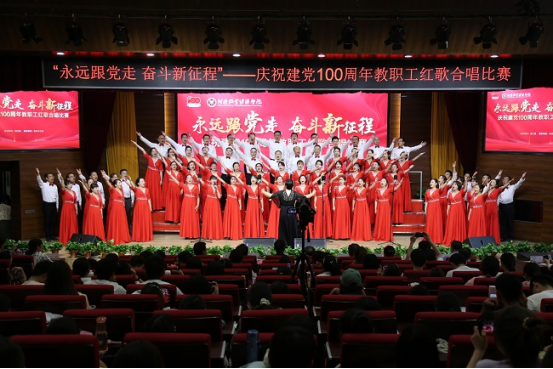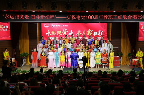 胸怀千秋伟业,恰是百年风华。唱响百年岁月,传承红色基因,全体教职工将坚定信念跟党走、担当作为新时代、立足岗位做贡献,以昂扬姿态投入学校建设新征程,不断书写新的历史、创造新的辉煌。(王俊杰 黄尚丽/文 袁三军 大学生记者团/图 )