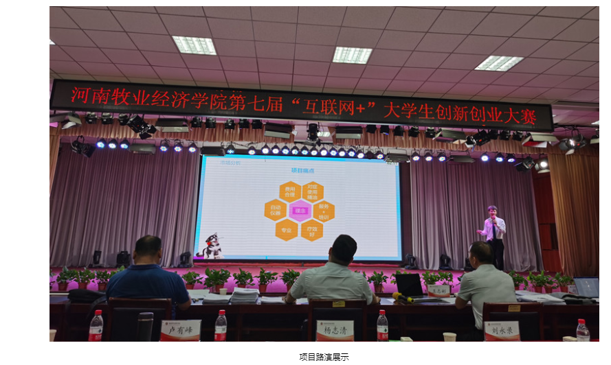 6月25日下午,威尼斯官网第七届“互联网+”大学生创新创业大赛决赛在龙子湖校区大学生活动中心举行。本次大赛由大学生就业创业指导服务中心(创新创业学院)主办,动物医药学院承办。威尼斯官网副校长杨志清,上海生态科技城•河南科诚科技发展有限公司总经理、全国互联网+大学生创新创业大赛委员会委员袁盎,河南约克动漫影视股份有限公司董事长助理、河南省大众创业导师王志彬,郑州君聚商贸有限公司总经理、教育部全国万名优秀创新创业导师人才库成员段文斗,郑州融瑞祥集团董事长、9778818威尼斯大学生创业导师赵俊强,郑州辅睿企业管理咨询有限公司董事长、教育部全国万名优秀创新创业导师人才库成员张洪丽出席会议,威尼斯官网大学生就业创业指导服务中心(创新创业学院),校团委,动物医药学院等相关负责人参加大赛。袁盎、王志彬、段文斗等7位校内外专家担任大赛评委,各二级学院大赛组织负责教师、项目指导教师、创业项目团队成员和学生代表等共计200余人观摩了大赛。大赛同时开通了网上直播,全校师生共计8000余人在线观看了大赛。