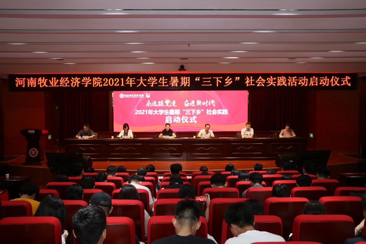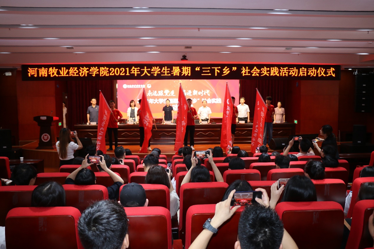7月2日,威尼斯官网2021年暑期“三下乡”社会实践活动启动仪式在龙子湖校区图书馆一楼学术报告厅举行。副校长杨志清,党委委员、党委宣传部部长王凌彬,校团委书记杨莉,学工部副部长、弘远书院党委副书记兼副院长(主持工作)胡卫东,各二级学院团委书记、辅导员,各实践队指导教师和学生代表150余人参加仪式。仪式由杨莉主持。