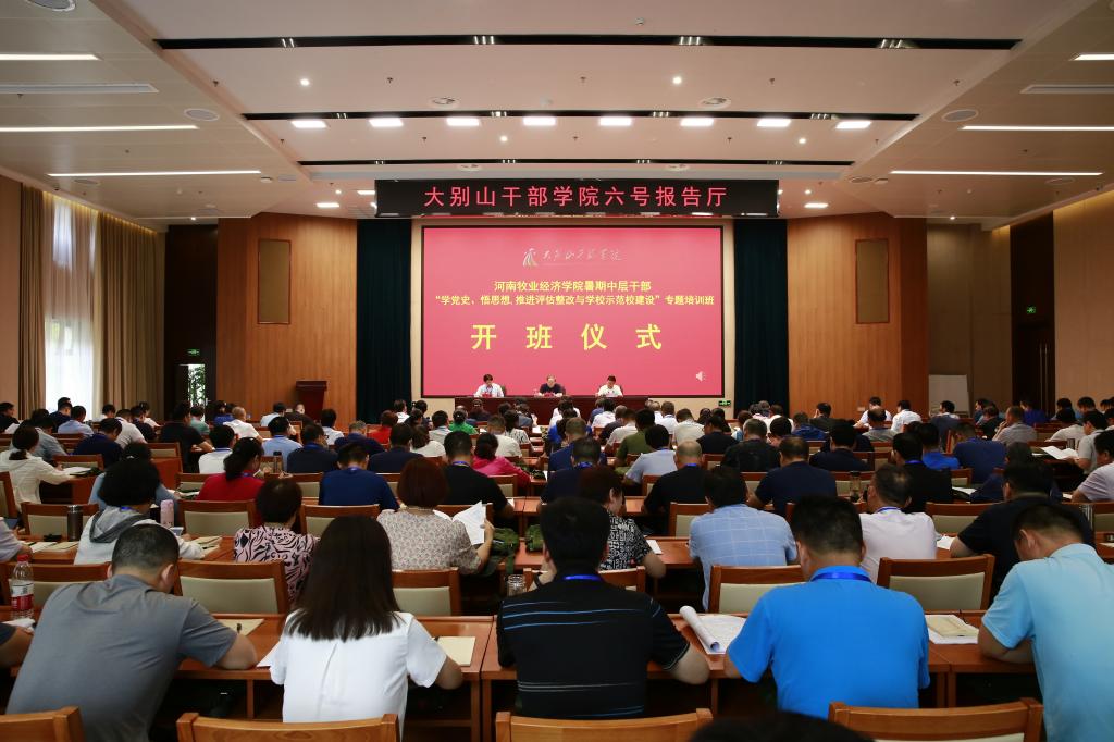 为深入学习贯彻习近平新时代中国特色社会主义思想和党的十九届五中全会精神,落实习近平总书记在党史学习教育动员大会上的重要讲话精神,巩固深化“不忘初心、牢记使命”主题教育成果,不断提升学校中层干部思想政治素质和办学治校能力,推动学校各项事业高质量发展,7月12至17日,学校在新县大别山干部学院举办“学党史 悟思想 推进评估整改与学校示范校建设”专题培训班,学校领导和全体中层干部参加了培训。