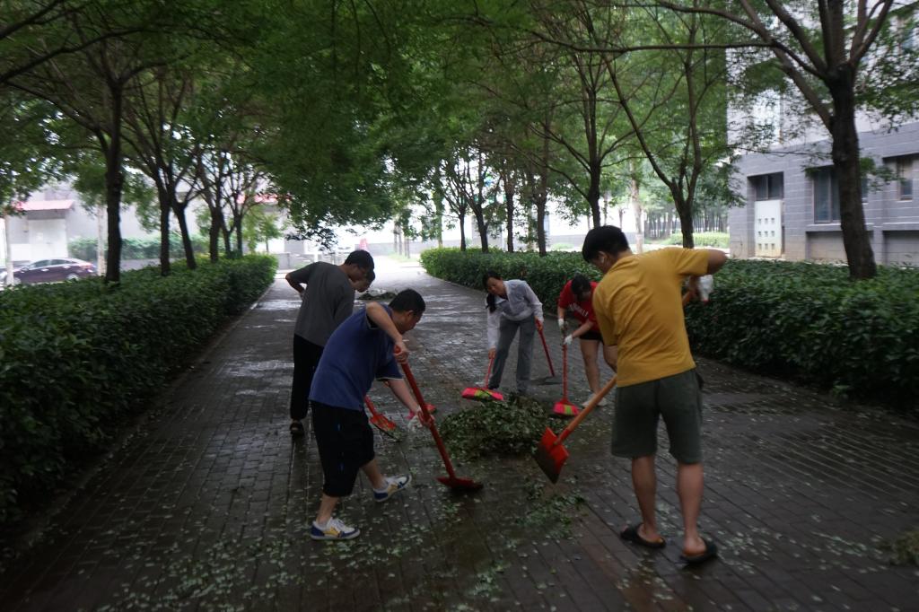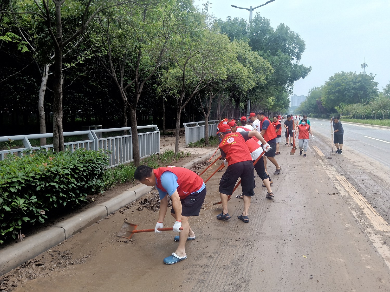 7月22日下午,随着路面水位逐渐退去,来自学校各部门的40余名志愿者走出校园,来到文苑北路开展路面清淤、垃圾清理等力所能及的志愿服务活动,志愿者们身着“红马甲”,头戴小红帽,手拿铁锹、扫帚等工具,分工协作,有的沿路清淤,有的清扫地面的垃圾、杂物,有的清理残留的积水……助力大家尽快恢复生产生活秩序,形成了防汛抢险、携手同心保卫家园的精神力量。