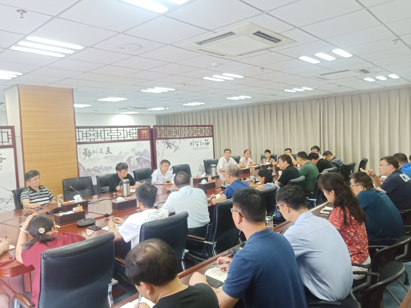 会上,李中华传达了《中共河南省委高校工委 中共河南省教育厅党组关于做好全省教育系统汛期安全管理工作的紧急通知》(豫教党〔2021〕135号)、《中共河南省委高校工委关于充分发挥全省高校基层党组织战斗堡垒和广大党员先锋模范作用 进一步做好防汛救灾工作的通知》(豫高发〔2021〕95号)等文件精神。杨宝进传达了7月22日上午校党委会研究部署学校当前防汛和汛后恢复工作专题会议精神。防汛救灾临时指挥部下设的龙子湖校区工作组、北林校区工作组分别通报了两校区汛情、险情及救灾情况。保卫处、图书馆、校友办、学生处、离退处、动物医药学院、继续教育学院、体育部等部门负责人分别通报了部门重点区域、关键部位防汛救灾情况。