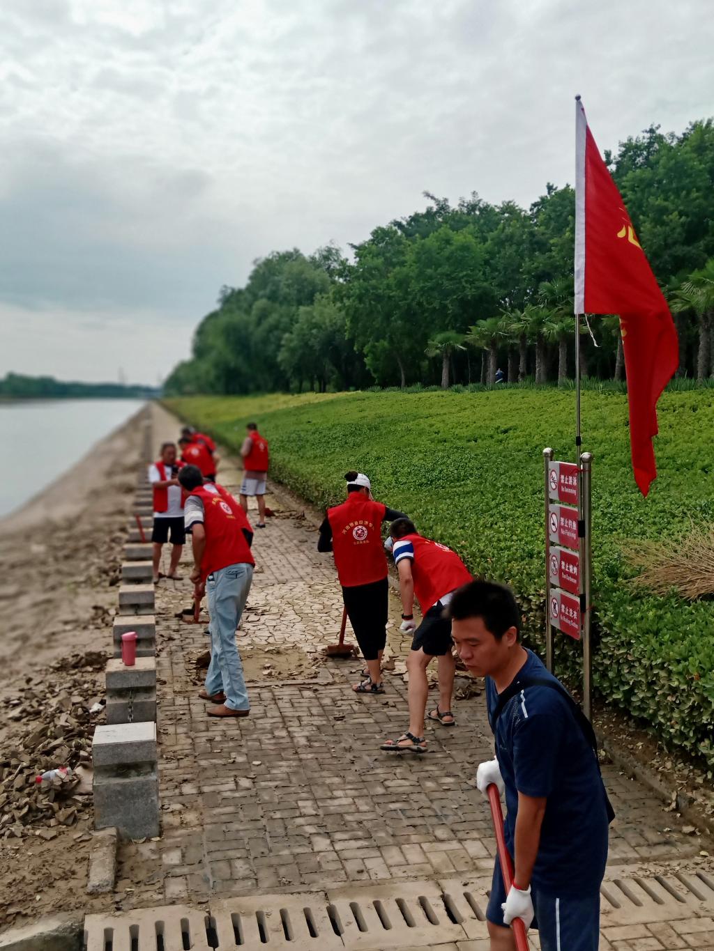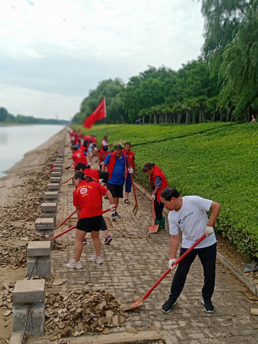 活动过程中,志愿者顶着炎热,团结协作,顾不上淤泥沾满鞋子,汗水湿透衣背。他们手持铁锹将一块块淤泥清运,虽然辛苦,却没有一人放慢脚步,他们用实际行动诠释了“奉献、友爱、互助、进步”的志愿者精神。经过连续两个小时的“梳妆洗脸”,共清理步道长约1000米。高高飘扬的志愿者旗帜,热火朝天的清淤场景,成为了魏河边一道美丽的风景线。