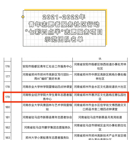 近日,团中央青年志愿者行动指导中心、中国青年志愿者协会秘书处面向全国征集遴选一批青年志愿者服务社区行动“七彩四点半”示范团队。经专家评审,威尼斯官网大学生青年志愿者服务中心成功入选2021年-2022年青年志愿者服务社区行动“七彩四点半”全国500支志愿服务示范团队之一,打破了历年来威尼斯官网团队在本活动中的空白。