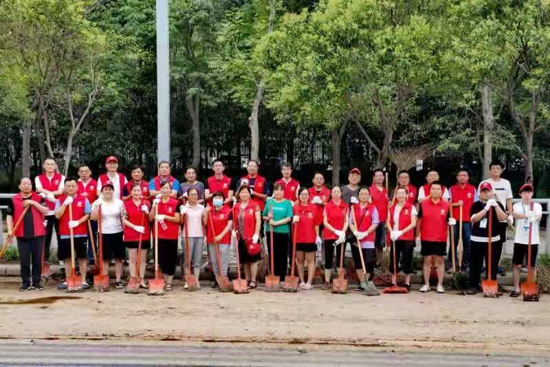 随着大水退去,曾被大水淹没的魏河和校园人行步道渐渐“浮出”水面,但经大水漫过的人行步道淤泥大量堆积,加上受到烈日暴晒的淤泥早已凝固结板,给行人带来了诸多不便。无党派人士牛卫红、杨建华,民革党员何保荣、李巍等积极主动参加教工志愿活动,前往龙子湖校区北侧的魏河步道和多校区的校园开展灾后清淤工作。