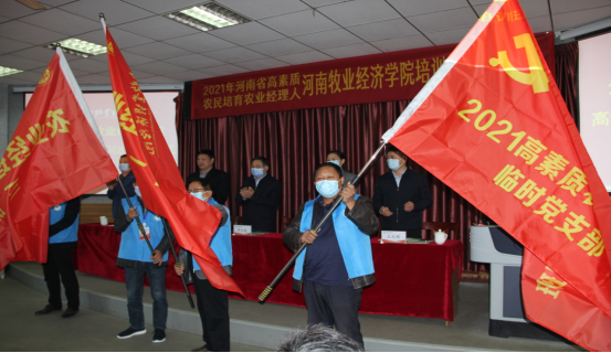 开班仪式上,校领导罗士喜、杨志清分别为培训班和培训班临时党支部授旗。(继续教育学院供稿)