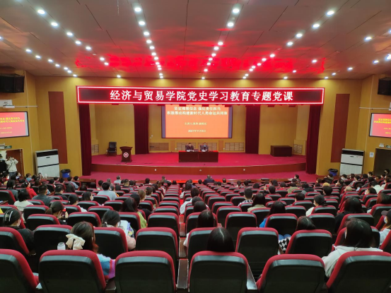 11月4日下午,副校长张伟以《坚定理想信念 强化责任担当 积极推进构建新时代人类命运共同体》为题,为经济与贸易学院师生讲授党史学习教育专题党课。经济与贸易学院全体教师、学生党员、2021年度党员发展对象聆听,该院党委书记张松刚主持。