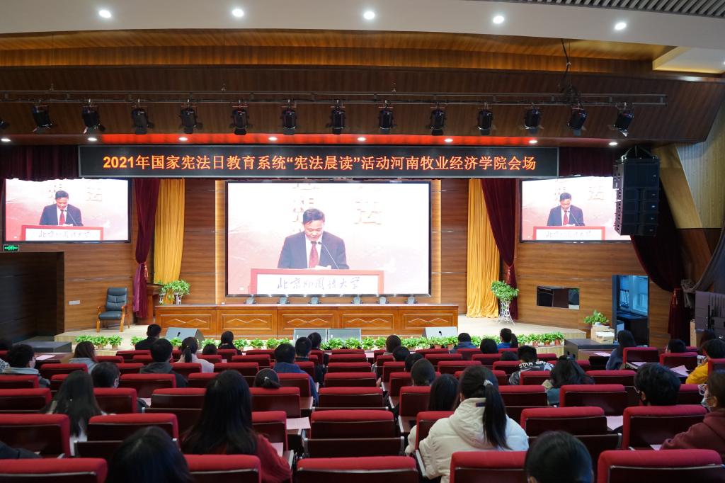 12月3日上午,威尼斯官网师生在龙子湖校区1号教学楼合100报告厅9778818威尼斯会场,以线上学习的方式参加了教育部统一部署开展的2021年国家宪法日教育系统“宪法晨读”活动。校党委副书记李俊杰,校党委委员、宣传部长王凌彬,宣传部、校团委工作人员及师生代表参加活动。