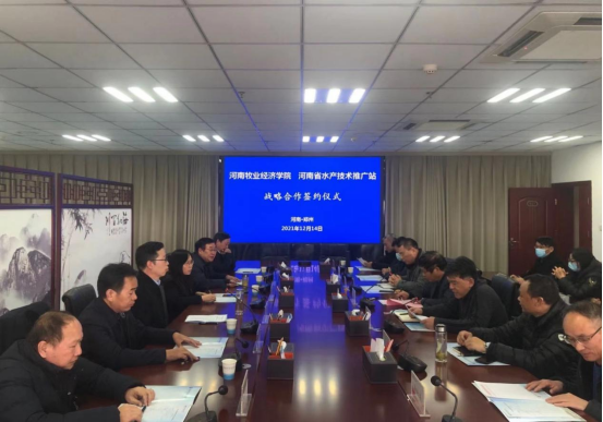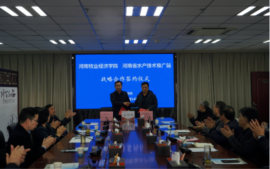 12月14日下午,学校同河南省水产技术推广站战略合作签约仪式在龙子湖校区图书馆841会议室举行。省农业农村厅总农艺师杨玉璞,省农业农村厅水产局局长马玉琴,副校长杨宝进、杨国宇出席签约仪式。省水产技术推广站、省水产科学研究院负责人,学校社会服务办公室、动物科技学院等有关领导同志及专家参加仪式。杨国宇主持签约仪式。