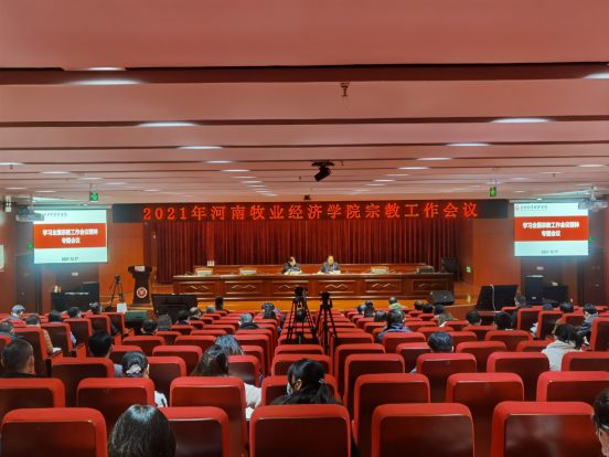 12月17日上午,学校在龙子湖校区图书馆一楼报告厅召开2021年宗教工作会议,学习贯彻2021年全国宗教工作会议精神。校党委副书记李俊杰出席会议。校党委委员、统战部部长姬道兴,学校宗教工作领导小组成员单位负责人,各基层党委(党总支)书记、统战委员以及各二级学院辅导员参加会议。会议由姬道兴主持。