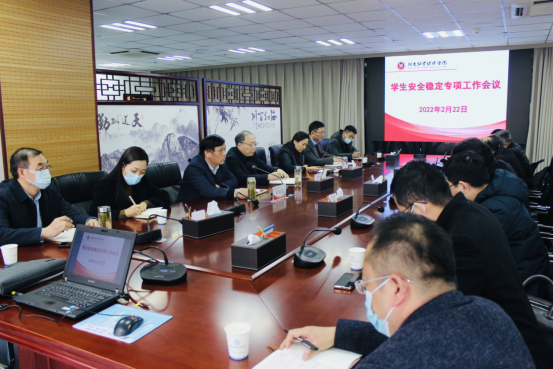 为扎实做好春季学期学生安全管理,进一步加强校园安全稳定工作,2月22日下午,学校学生安全稳定专项工作会议在龙子湖校区图书馆841会议室召开。校党委书记穆瑞杰,副校长杨志清、杨宝进出席会议,党委宣传部、党委学工部、后勤处、保卫处、大学生心理健康教育中心等职能部门负责人以及各学院(书院)党委书记、副书记参会。会议由副校长杨志清主持。