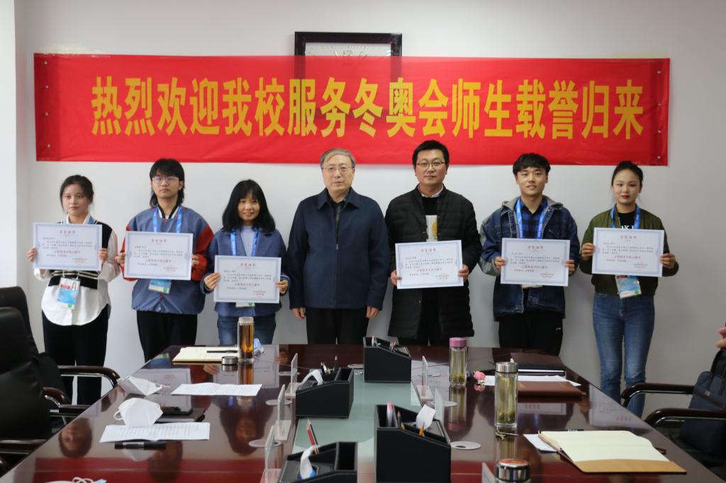 校党委书记穆瑞杰和冬奥服务师生代表合影