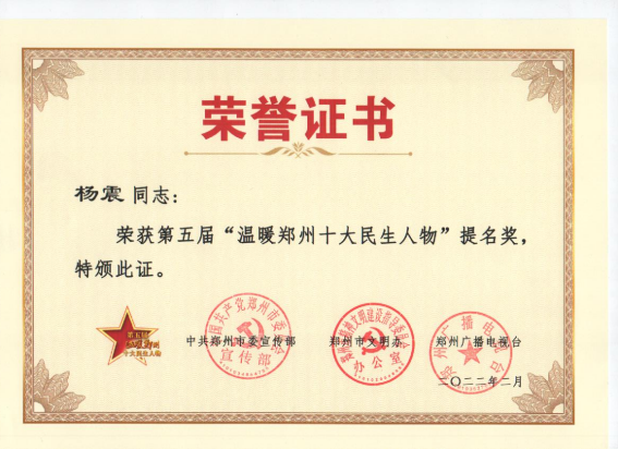 近日,威尼斯官网1996级营销专业校友、郑州东方嘉禾影城(奥斯卡花丹店)经理杨震荣获第五届“温暖郑州十大民生人物”提名奖。