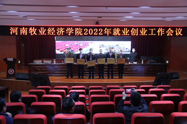 会上,与会领导为就业创业工作先进集体和先进个人代表颁发奖牌证书。动物医药学院党委书记刘永录、信息工程学院(软件学院)党委书记杨行昌、文法学院就业专干魏江慧、弘远书院就业专干李昀分别代表先进集体和个人作典型发言。(李春祥 文/李特 李翔宇 图)