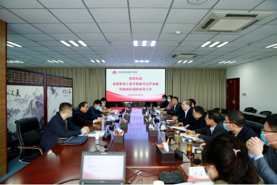4月20日上午,省委教育工作委员会专职副书记尹洪斌,省教育厅思政处长陈凯、组干处副处长李玉伟一行到校调研指导工作,在龙子湖校区图书馆841会议室召开工作座谈会。学校领导和相关部门负责人、教师代表参加座谈会。会议由校长罗士喜主持。