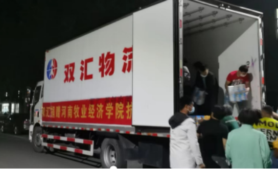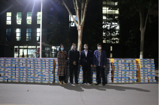 5月6日深夜,双汇集团一辆满载2500箱双汇火腿肠的物流厢车,开进了学校龙子湖校区,送来对师生的问候和关爱,为助力学校打赢疫情阻击战增添力量。校党委副书记李波代表学校接收了捐赠。