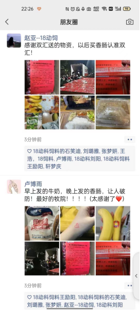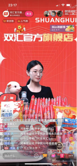 收到双汇捐赠的王中王产品,学生们纷纷涌入双汇直播间,表达:这是自己吃到最“有爱的”的香肠。并情不自禁地在宿舍中开始了花样秀感激,为双汇打call: 双汇,中!(吴静)