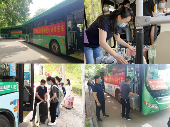 在前期充分调研的基础上,结合每日统计的离校学生数量,学工部于每天早上7:30、下午13:30安排充足数量的爱心送站专车分别从三校区发往郑州火车站和郑州东站。学工部、保卫处人员对每位离校学生进行手续查验,引导学生有序登车,并主动上前扛运行李,用真情温暖学生返乡路。学生纷纷表示:“这项温馨服务,既减少了路途中感染的风险,也减轻了我们携带大件行李奔波的辛苦,同时缩短了路上转车赶车的时间,感谢学校的暖心举措,为学校点赞!”截至目前,学校已累计安排爱心送站专车40余辆,累计送站1500余人。未来两天,学校将继续安排充足车辆,为学生提供更加细致、周到、暖心的服务,确保学生安全离校、平安返乡。