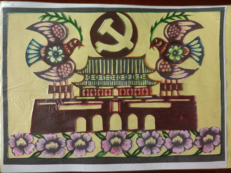 从嘉兴南湖上的红船,到延安宝塔;从天安门前载歌载舞的各民族青年,到舞动党旗的少年;从河南博物院,到千禧广场、福塔;从怀抱仙桃的婴儿,到跃出水面的双鲤;从“鼠(属)你有才”到“龙腾虎跃”……彭爱娟用160余幅生动形象的剪纸艺术作品,讴歌了党的光辉历史,表达了人民的美好愿望,渗透了浓浓的感恩之心,深深的爱党之情。