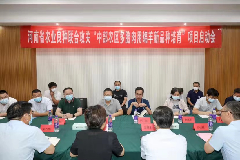 7月14日至15日,河南省农业良种联合攻关“中部农区多胎肉用绵羊新品种培育”项目启动大会在漯河市舞阳县召开,启动大会由权凯主持。该项目以权凯团队核心技术为依托,以市场需求为导向,引领项目科研团队重点研发多胎肉用绵羊育种,对于加快河南省培育具有自主知识产权的“多胎、快长”肉用绵羊新品种、提升肉羊育种企业核心竞争力具有重要意义。会上,河南省肉样产业技术体系综合试验站站长王献伟首先介绍了该项目的背景情况。会后,与会人员到项目牵头单位河南绿源肉羊发展有限公司进行了实地考察与现场指导。