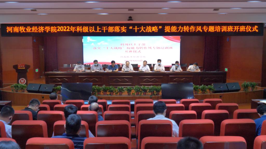会上,校党委副书记李俊杰宣读了《关于举办2022年科级以上干部落实“十大战略”提能力转作风专题培训班的通知》,就培训安排及要求作了具体说明。