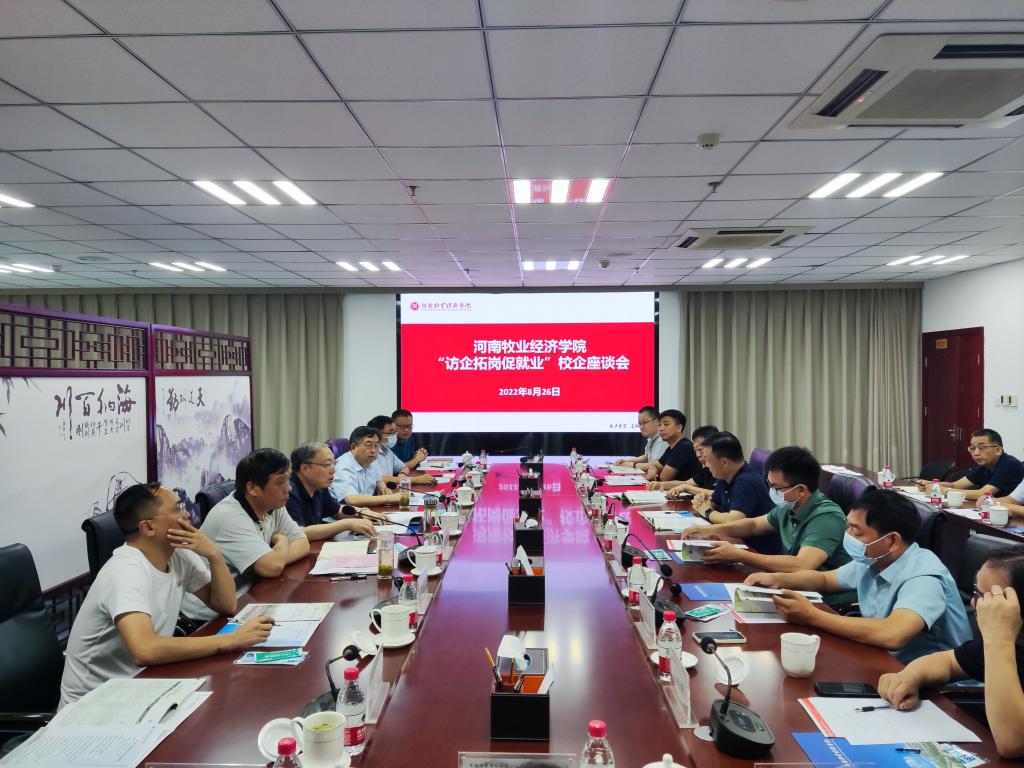 8月26日下午,“访企拓岗促就业”校企座谈会在图书馆841会议室召开,河南花花牛集团、郑州双汇食品有限公司等14家企业代表应邀参加会议,党委书记穆瑞杰、校长罗士喜、副校长杨宝进出席会议。会议由杨宝进主持。