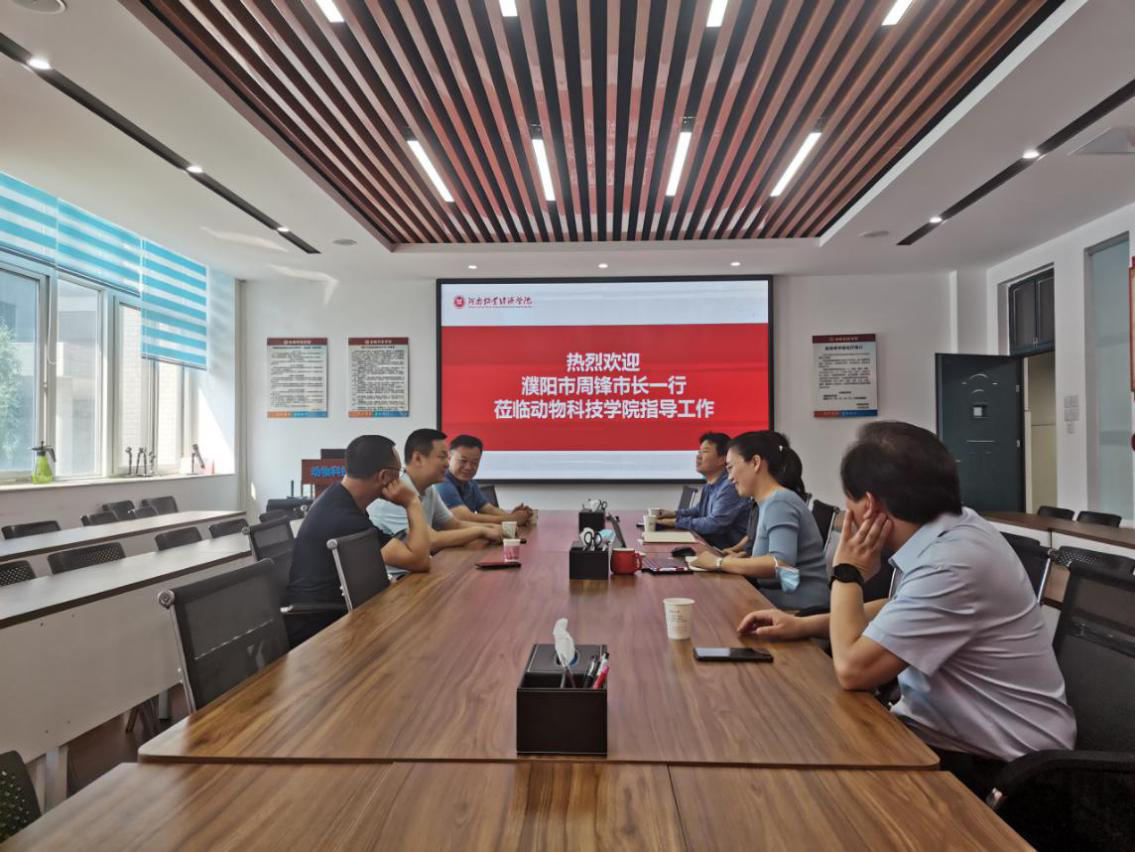 9月11日上午,濮阳市副市长周锋到学校调研指导工作,校长罗士喜、动物科技学院班子成员陪同调研。