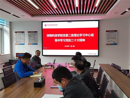 聚焦党的二十大报告中的“关键词”。动物科技学院书记王建伟重点从 “三件大事”、中国化时代化的马克思主义、“两个结合”“六个坚持”中心任务等内容进行解读,希望所有党员干部,用自己的实际行动为实现党的二十大提出的奋斗目标,凝心聚力,投身新时代,建功新征程。旅游学院书记权太举对报告中“中国式现代化”、“理论创新的科学方法”、“新时代党的建设”等内容进行了深刻剖析,带领大家学习了报告中彪炳史册的成就和催人奋进的蓝图。