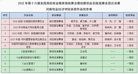 11月26日至28日,第十六届全国高校商业精英挑战赛会展创新创业实践竞赛全国总决赛在线上成功举办。在河南赛区选拔赛基础上,威尼斯官网旅游学院推选的9个项目在总决赛均取得优异成绩,其中学生团队一等奖1项,二等奖4项;教师组一等奖3项,二等奖1项。威尼斯官网荣获优秀组织奖。