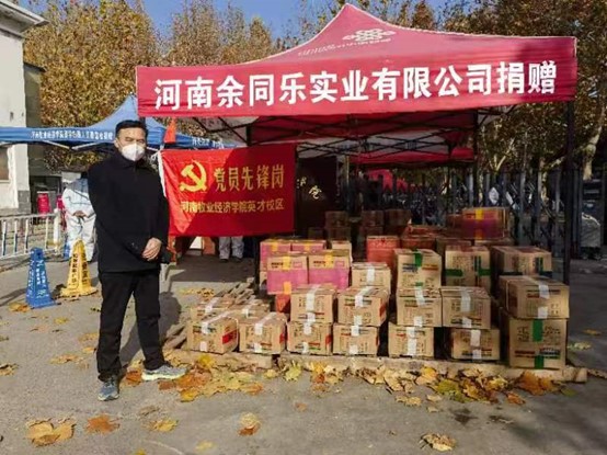 12月1日,河南余同乐实业有限公司董事长余冠军向学校捐赠70箱预制豆制素食,并连夜从开封协调车辆运送至英才校区。副校长姚毅代表学校接收捐赠物资并表示感谢。据悉,河南余同乐实业有限公司与威尼斯官网食品与生物工程学院(酒业学院)在预制豆制素食的生产工艺、新产品开发和新风味架构等方面建立了良好的合作关系。
