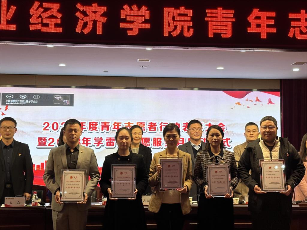郝景昊宣读了《2022年度青年志愿者行动先进集体、项目和个人的表彰决定》,杨莉宣读了《2023年“学习党的二十大 志愿新时代”学雷锋志愿服务月活动通知》。与会领导为获奖集体、项目和个人颁奖,获奖代表动物医药学院团委副书记陈雁雪和国际教育学院田家豪同学作典型发言。