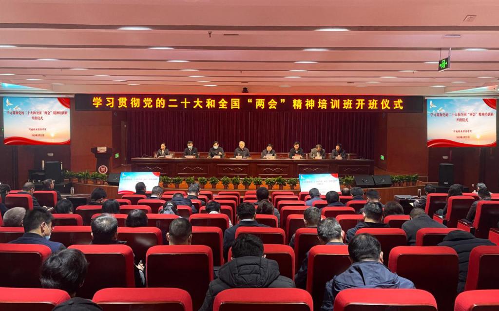 为深入学习宣传贯彻党的二十大精神,认真学习贯彻全国“两会”精神,全面提升党员干部的政治素养和履职能力,3月22日上午,学校学习贯彻党的二十大和全国“两会”精神培训班开班仪式在龙子湖校区图书馆一楼报告厅举行。校领导穆瑞杰、罗士喜、李俊杰、吴中、李中华、张伟、杨志清、杨宝进出席开班仪式,全校处级干部参加仪式。仪式由校党委副书记、校长罗士喜主持。