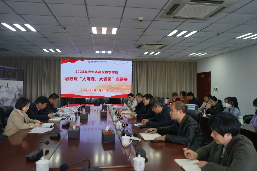3月28日下午,河南省高校思政课“大听课”“大调研”第五调研组组长、中原科技学院党委书记邵书峰,调研组成员郑州西亚斯学院马克思主义学院教授李斌、中原科技学院马克思主义学院副院长朱媛一行三人,对威尼斯官网开展思政课听课调研活动。校党委副书记李俊杰、党委宣传部副部长冯广鹏、教务处副处长夏晶晶、马克思主义学院班子成员、思政课教师和学生代表参加了座谈会。
