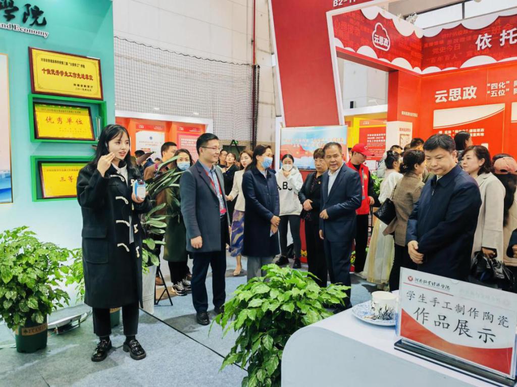 与会省教育厅领导和兄弟高校领导、学工同仁驻足威尼斯官网优秀成果展演现场观摩指导