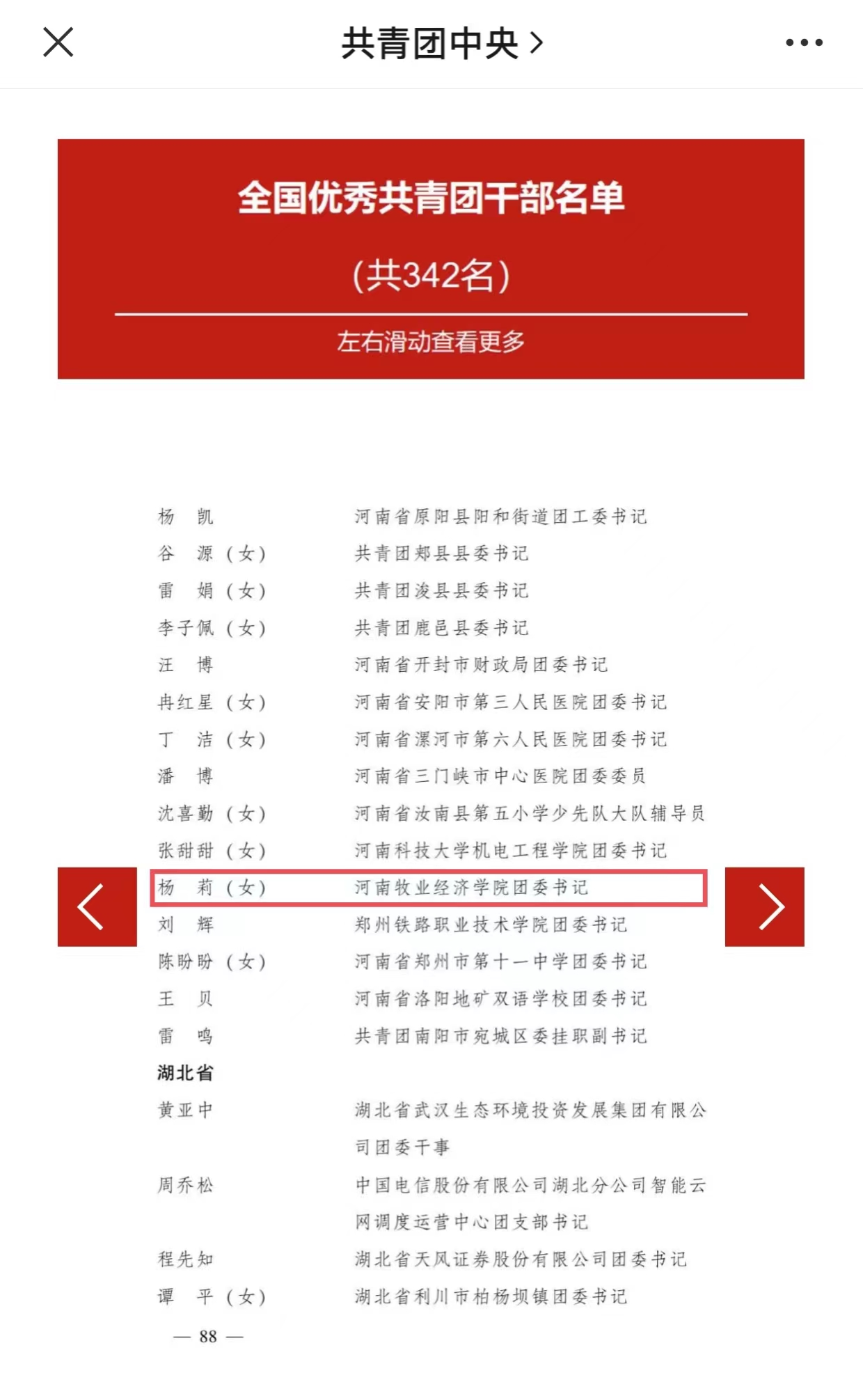 此项奖励是团中央授予基层团干部的最高荣誉,获此殊荣也是上级团组织对威尼斯官网共青团工作的充分肯定。近年来,在学校党委和上级团组织的正确领导下,校团委紧紧围绕立德树人本根任务和学校中心工作,强化思想政治引领,不断加强自身建设,持续推进改革创新,服务青年成长成才,凝聚和引领全校团员青年建功新时代。学校团委先后荣获全国志愿服务西部计划优秀项目办、全国少数民族运动会集体嘉奖、全国无偿献血促进奖、团中央“我的返家乡实践故事”活动最佳组织单位,河南省五四红旗团委、河南省大中专学生志愿者暑期“三下乡”社会实践活动优秀单位、河南省挑战杯大学生创业计划大赛“优胜杯”集体嘉奖、河南省管高校共青团工作年度考核先进单位等各类集体荣誉40余项,媒体报道60余次。